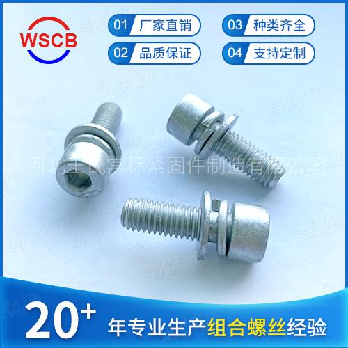 8.8级达克罗内六角三组合螺丝DIN912圆柱头带平垫弹垫片螺钉