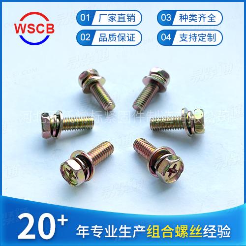 镀彩锌黄锌GB9074.13外六角十字凹穴带垫三组合螺丝螺栓