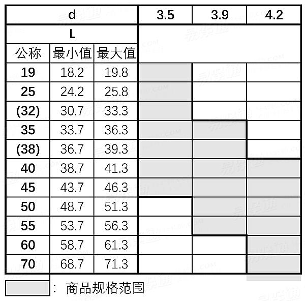 | ①,L ≤ 50mm的螺钉制成全螺纹,L1 ≈ 6 mm; L> 50mm的螺钉,b ≥ 45mm。 |