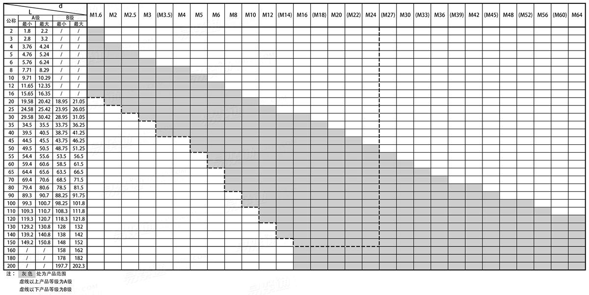 | 选择规格尺寸 点击↓ M1.6 M2 M2.5 M3 (M3.5) M4 M5 M6 M8 M10 M12 (M14) M16 (M18) M20 (M22) M24 (M27) M30 (M33) M36 (M39) M42 (M45) M48 (M52) M56 (M60) M64 括号内尺寸为非优选