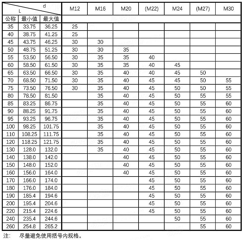 | 选择规格尺寸 点击↓ M12 M16 M20 (M22) M24 (M27) M30 括号内尺寸为非优选