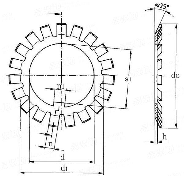 角形垂直外舌止动垫圈 Lock Washers with Angular Upturn Tab Perpendicular to The External Tab |