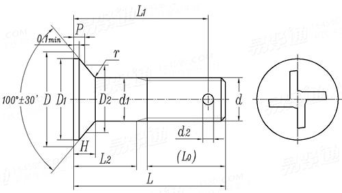 光杆公差带f9 十字槽100°沉头螺栓 Cross Recessed 100° Countersunk Head Screws,Shank Tolerance f9 |