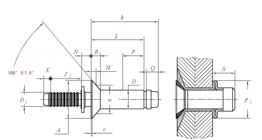 米制结构型100°或120°开口沉头抽芯铆钉 Metric 100 and 120 Deg Flush Head Style Structural Flush Break Pull Mandrel Self-Plugging Blind Rivets 供应商(1) |