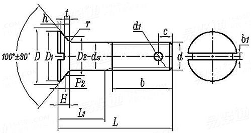 开槽沉头螺栓 (精制) [Table 1-1] Slotted Flat Head Bolts, Fine Finished [Table 1-1] |