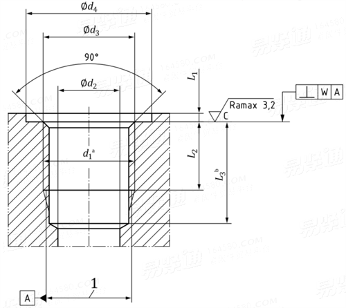 螺纹 d1① | d2 参考 | d3 | d4② min | L1 max | L2 min | L3③ min | W | ||