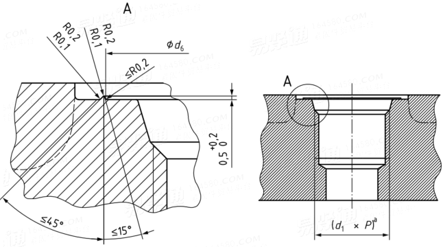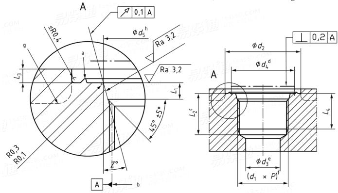 螺纹① d1×P | d2 | d3② | d4 | d5 | L1 | L2③ | L3 | L4 | Z° | |