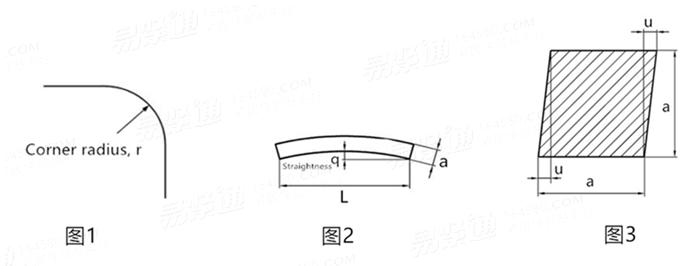 见图1 Corner radius r | 见图2 Straightness q | ||