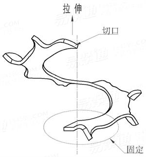 韧性试验:将垫圈齿圈切开,固定一端,拉伸另一端,使其分开的距离约等于垫圈的内径,拉伸方向如上图所示。然后目测垫圈表面。