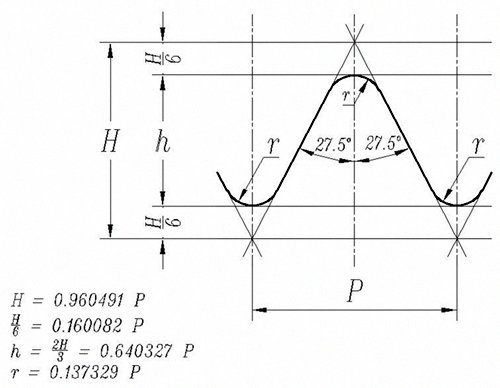 Pipe Threads with 55 Degree Thread Angle where Pressure-Tight Joints are not Made on the Threads