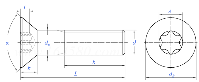 内六角花形沉头螺钉,普通头型,降低承载能力 Hexalobular Socket Countersunk Flat Head Screws (Common Head Style) with Reduced Loadability |