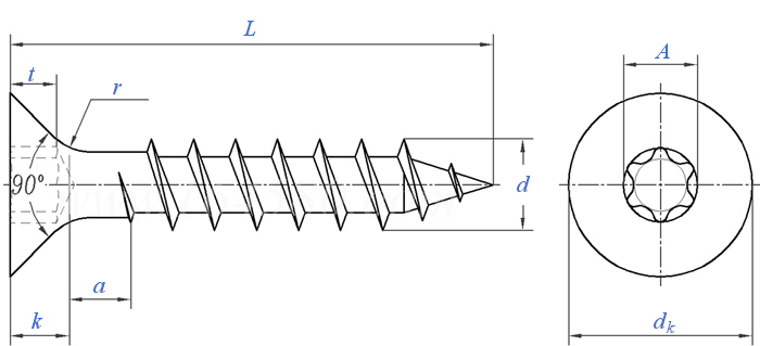 梅花槽沉头纤维板钉 Hexalobular Socket Countersunk Head Wood Screws |