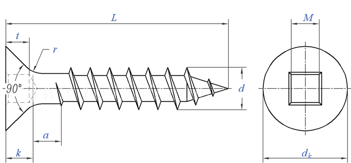 四方槽沉头纤维板钉 Square Recessed Coutersunk Head Wood Screws |