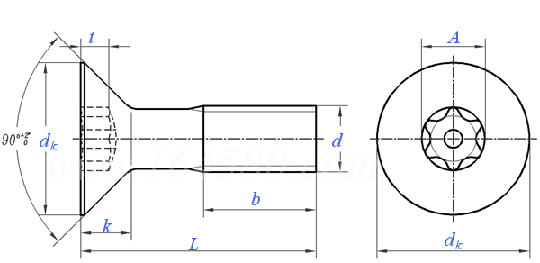 内六角花形沉头螺钉,普通头型,降低承载能力 Hexalobular Socket Countersunk Flat Head Screws (Common Head Style) with Reduced Loadability |