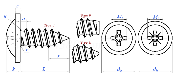 II型十字槽盘头自攻螺钉 C型(统一螺纹) [Table G3] Type II Cross Recessed Round Head Tapping Screws - Type C Thread Forming [Table G3] |